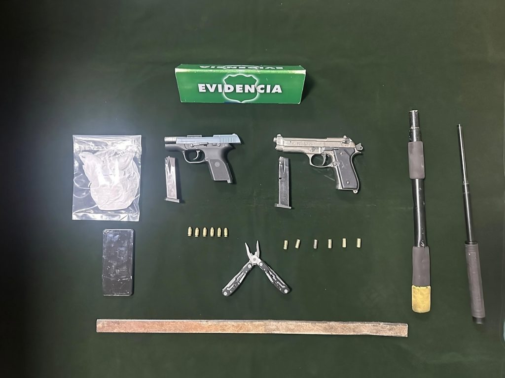 El mayor Mauricio Rodríguez, comisario de la 8ª Comisaría de Carabineros de Temuco dijo que “al verificar los antecedentes del detenido, un hombre mayor de edad, se pudo establecer que además mantenía dos órdenes de detención vigentes para cumplir condena por delitos asociados a la conducción irresponsable y que mantenía en su poder un armamento de fuego, otro a fogueo, un arma blanca y clorhidrato de cocaína”, precisó.