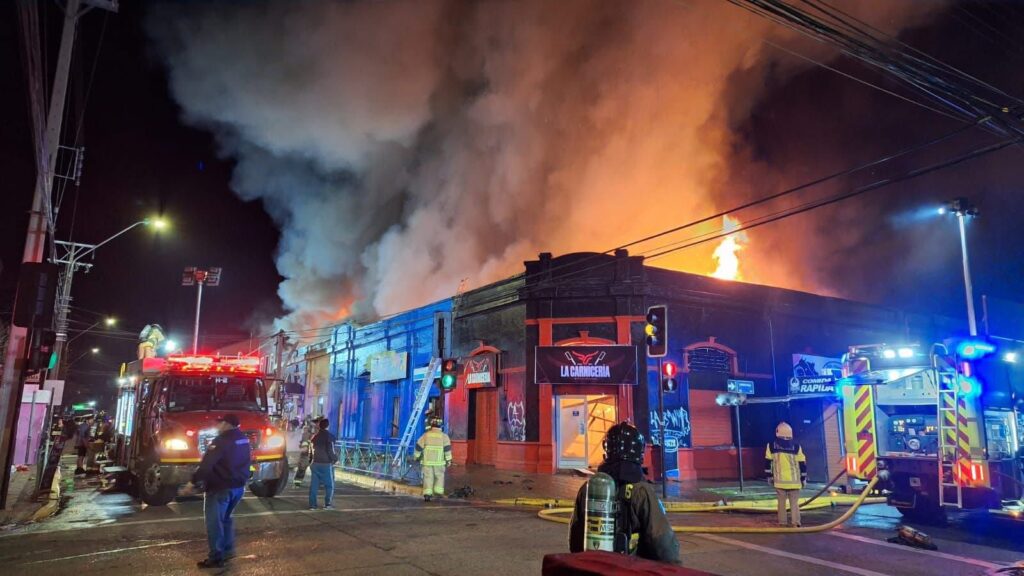 Un feroz incendio destruyó al menos 14 locales comerciales la noche del miércoles en pleno centro de la ciudad de Victoria. El siniestro se desató alrededor de las 19:00 horas en la intersección de las calles Pisagua y Gorostiaga, afectando una antigua casona donde funcionaban múltiples emprendimientos.