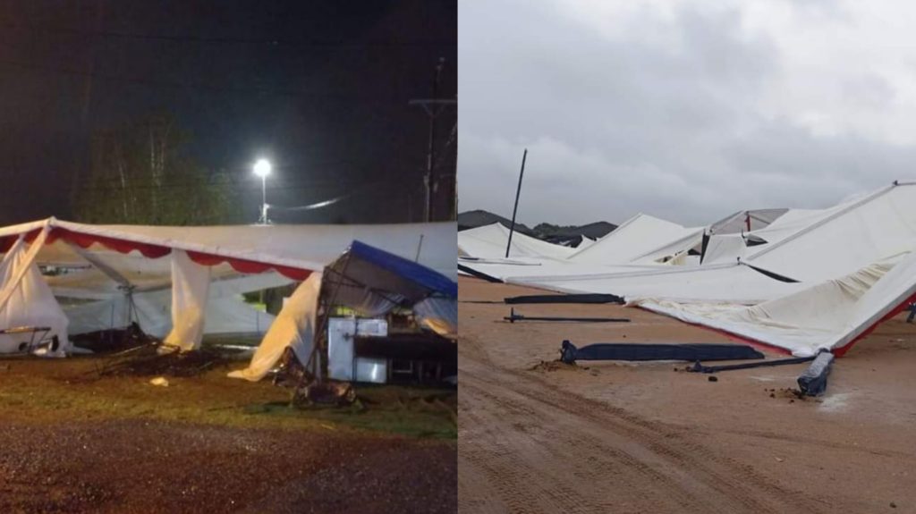 Las impidadosas rachas de viento que azotaron con fuerza durante la madrugada del jueves, destruyeron las infraestructuras que albergaban dos eventos familiares que fueron organizados por los municipios de Collipulli y Victoria.
