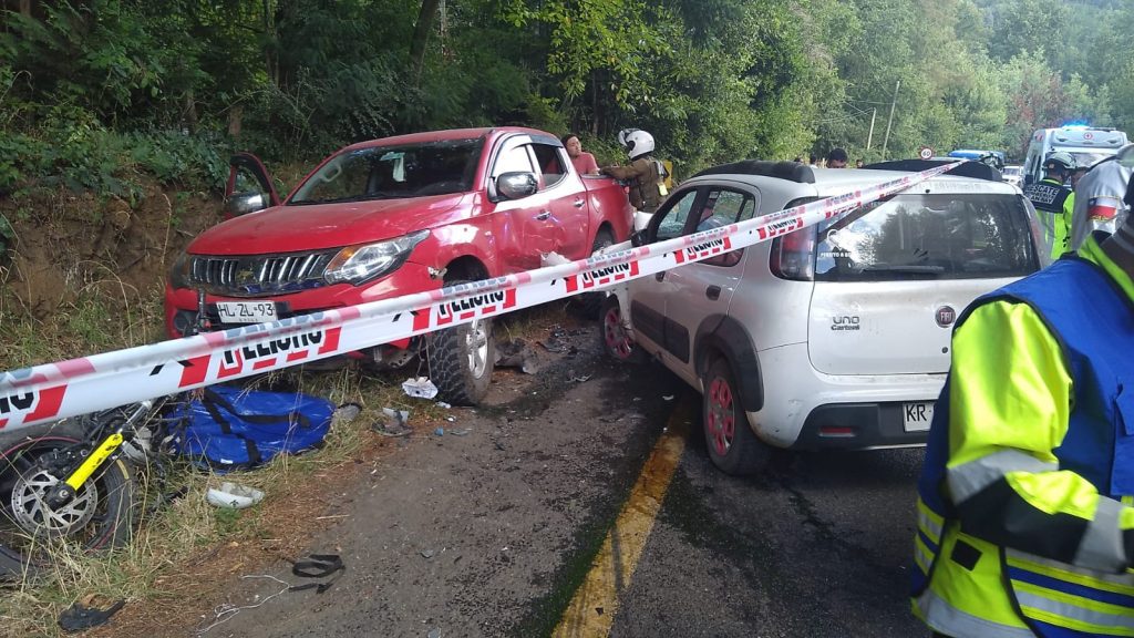 El tercer comandante del Cuerpo de Bomberos de Villarrica, Francisco Vallejos, detalló que se trató de “una colisión frontal de una motocicleta con un vehículo menor a alta energía. Lamentablemente tenemos una persona fallecida en el lugar y también bomberos rescató e inmovilizó a una persona dentro de un vehículo menor que fue atendida por SAMU”.