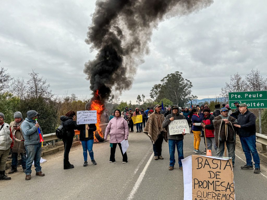 El lunes recién pasado, residentes de los sectores Punta Riel, Ponhuito, Pelehue y Coihueco protestaron durante largas tiempo en el puente Peule, donde el tránsito fue obstaculizado desde las 8:00 hasta las 17:00 horas.