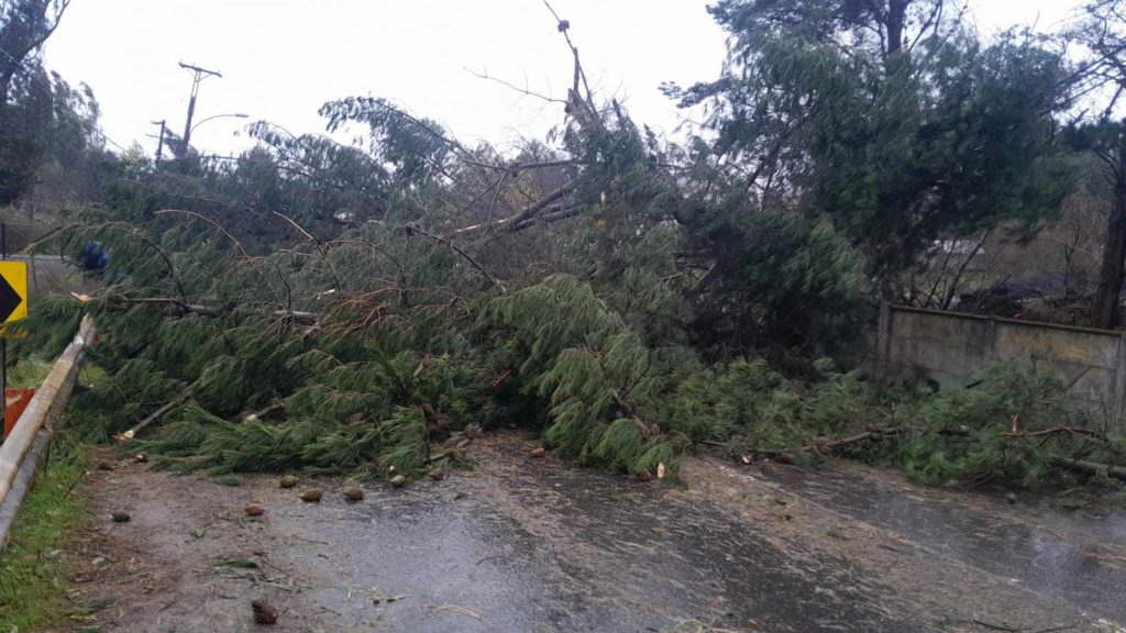 Un par de árboles y dos postes de luz colapsaron a la altura a la altura del Molino, en el sector Portal San Francisco debido a los ventarrones, impidiendo el desplazamiento de los automovilistas entre Temuco y Cholchol.