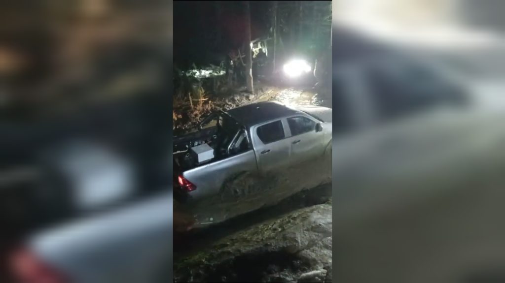 El metraje da cuenta de las dificultades que presenta el terreno en el que esta tarde, pasadas las 19:00 horas, quedaron 12 turistas atrapados a bordo de sus camionetas quienes ingresaron manera irregular al recinto natural.