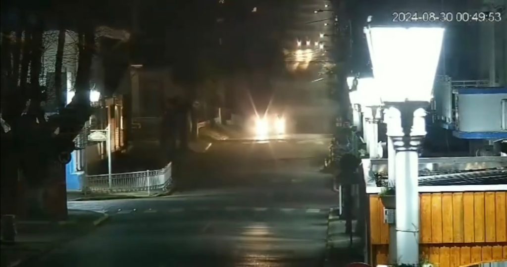 En el metraje captado por las cámaras de seguridad municipales, se observa como el automóvil comienza a zigzaguear una cuadra antes del choque para que, posteriormente, su conductor pierda el control de la maquina, impactando una señalética en una intersección.