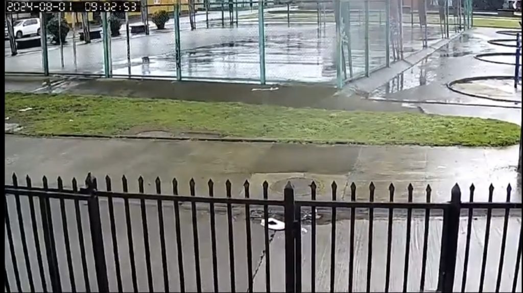 Afortunadamente, en el momento que cayó la estructura metálica, no habían personas en el lugar.